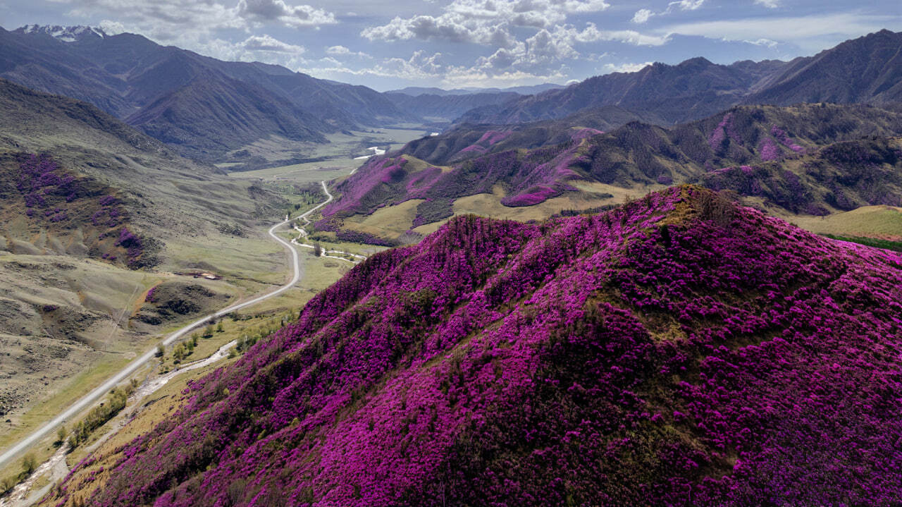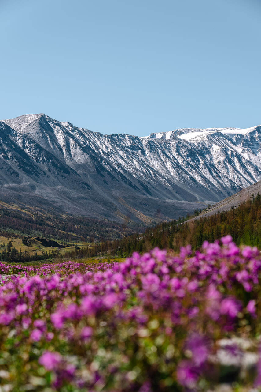 Мы проедем по Чуйскому тракту, который входит в пятёрку красивейших дорог мира. По пути остановимся в самых знаковых местах: слияние рек Чуя и Катунь, перевалы Семинский и Чике-Таман, Катунские террасы… и, конечно же, цветущие фиолетовые горы, где мы и будем делать остановки для фотосессий.