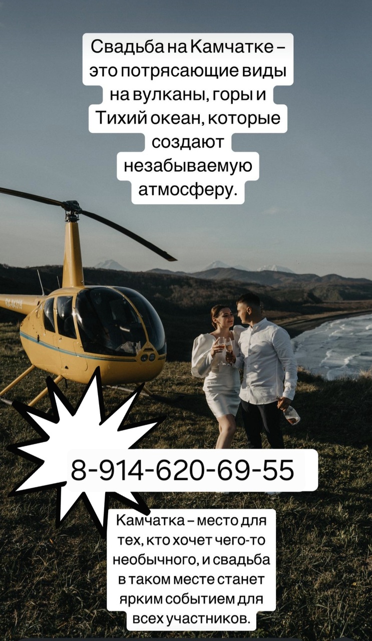 Готов отправиться в самое незабываемое приключение? С "Вдали" ты сможешь увидеть Камчатку с высоты птичьего полета! Вертолётные экскурсии над вулканами, погружение в дикие пейзажи и отдых в горячих источниках—всё это ждет тебя. Позволь природе удивить тебя, а адреналину—насытить твою кровь. Камчатка ждёт тебя! ??✨