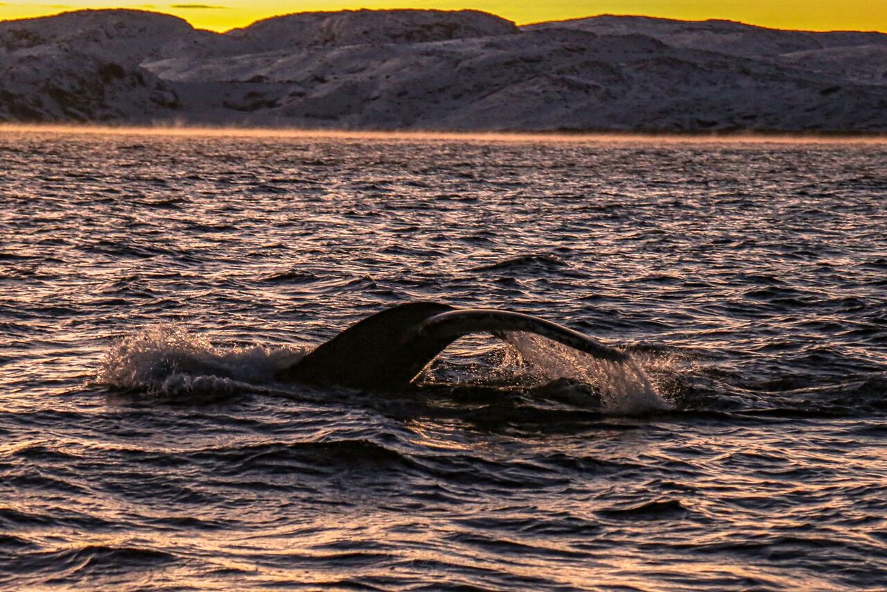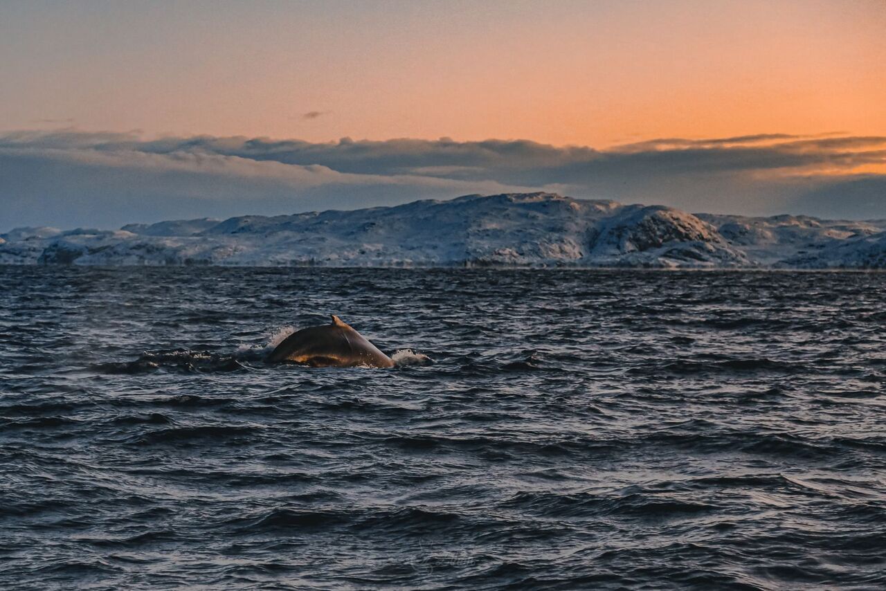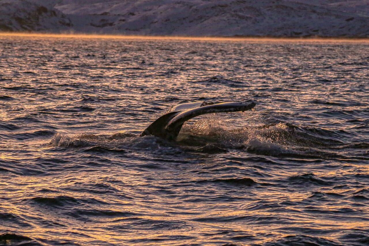 Вас ждёт выход на корабле в открытое море в поисках китов, горбача, малых полосатиков, косаток, дельфинов. Киты и косатки посещают бухты и заливы Баренцева моря, где они кормятся, отдыхают, играют и радуют туристов невероятными представлениями: охотятся, выпрыгивают из воды, бьют своими огромными хвостами по воде.