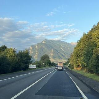 - Сделаем остановку с видом на Казбек;