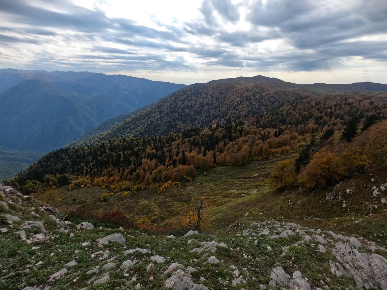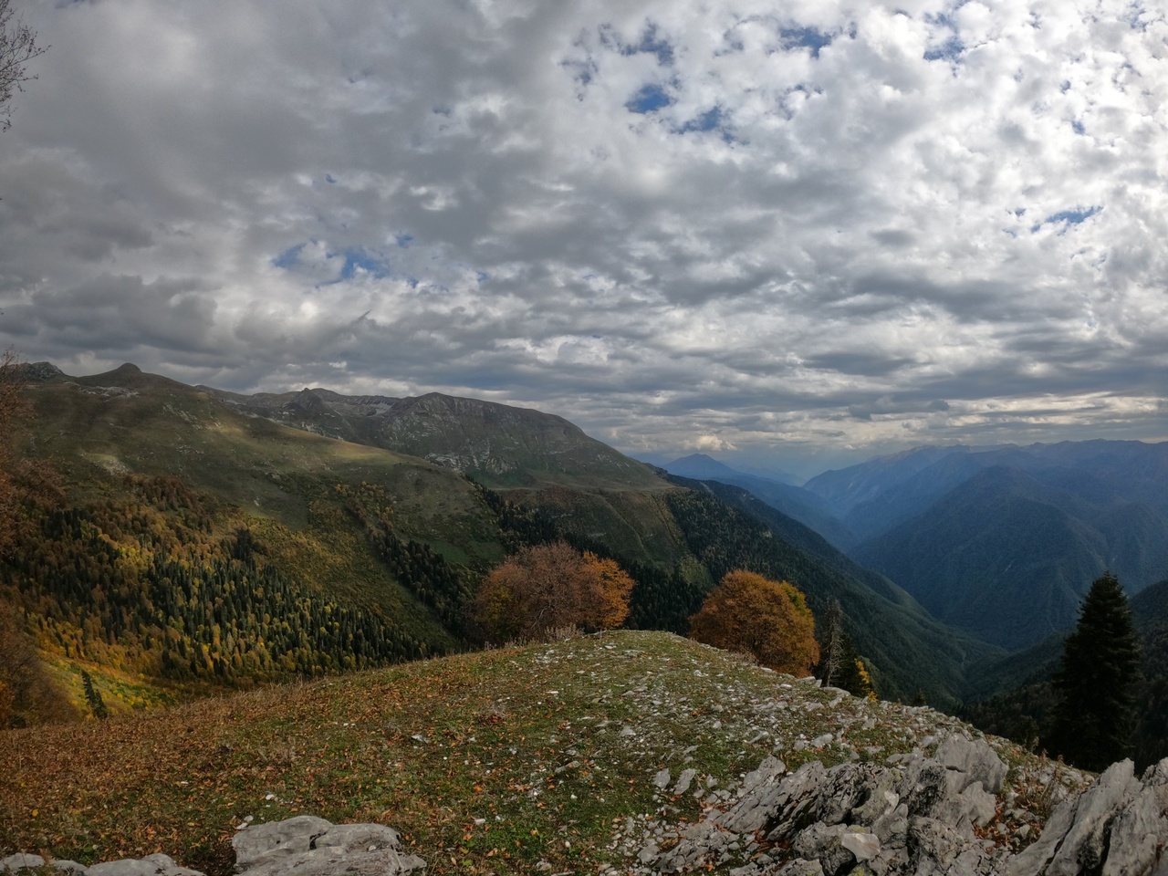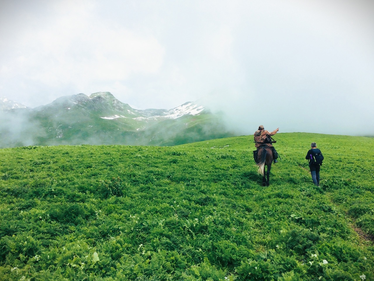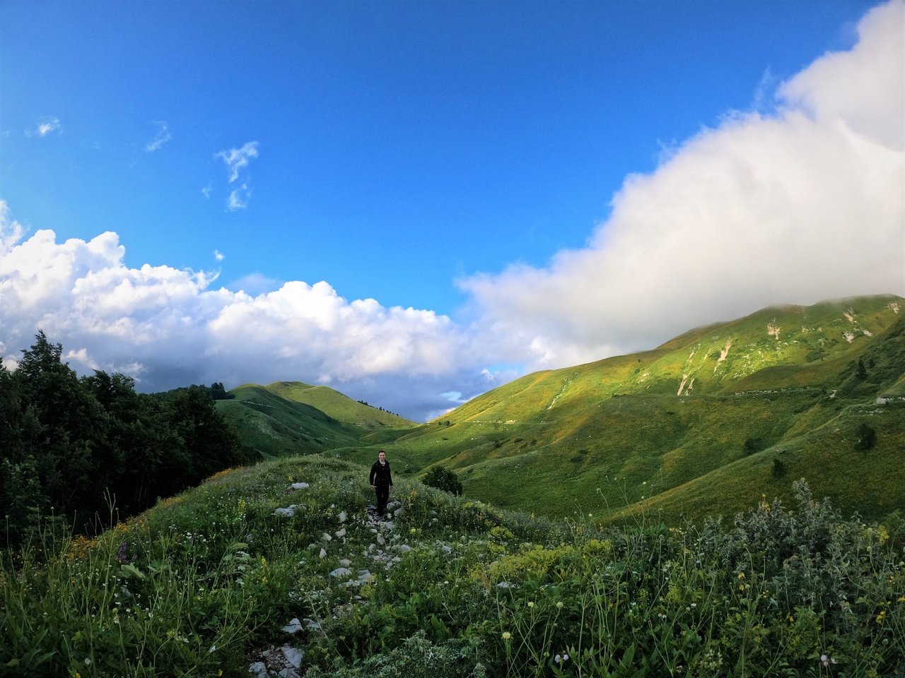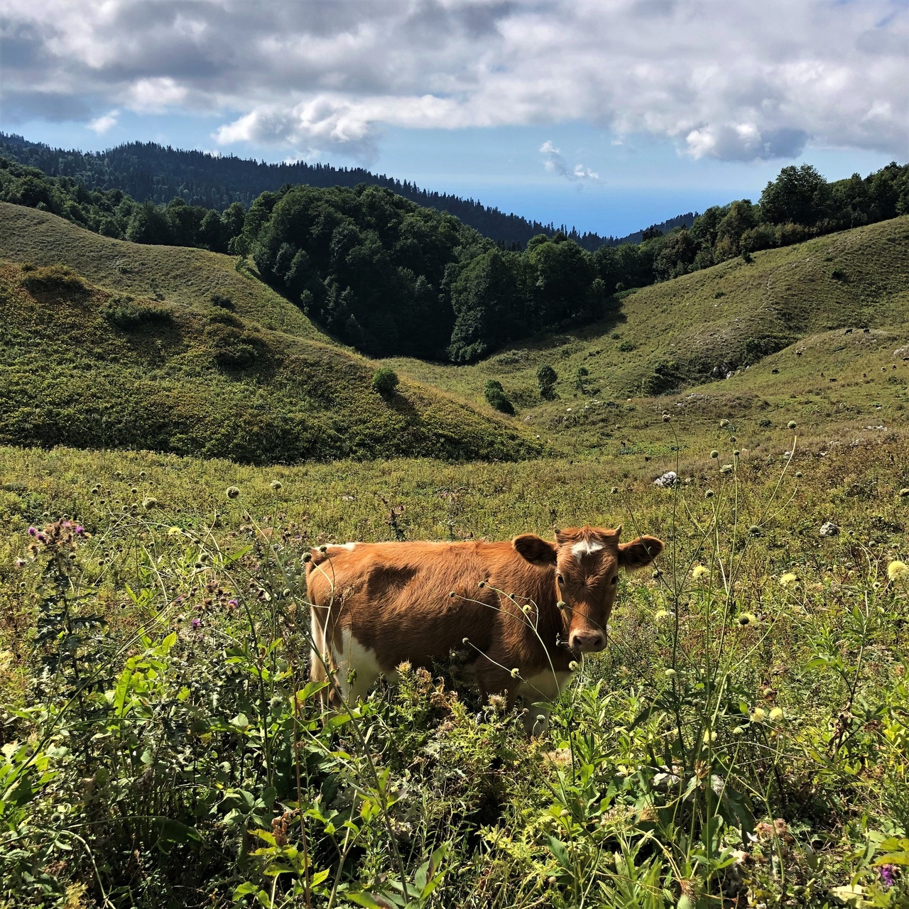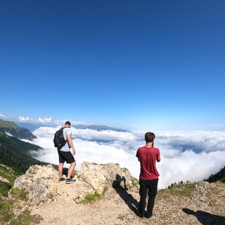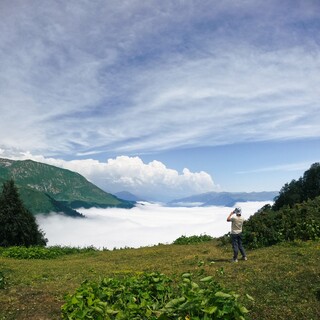 Трансфер доставит нас по горному серпантину к старту маршрута. Наша цель на сегодня - выход к альпийским лугам урочища Бамбояш. Отсюда открываются великолепные виды на Бзыбьский хребет, Рицинский реликтовый парк, плато Арабика, Гагрский хребет и морской горизонт.