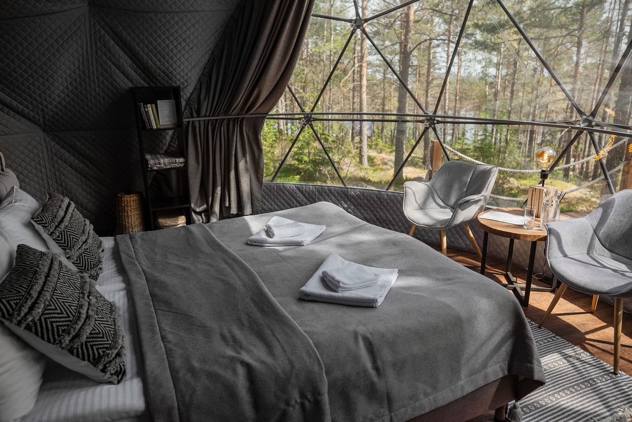 Ночь вы проведете в уютных шатрах-полусферах в окружении соснового леса. - День 2. День 2. Природная тропа острова, Русская баня с пар-мастером