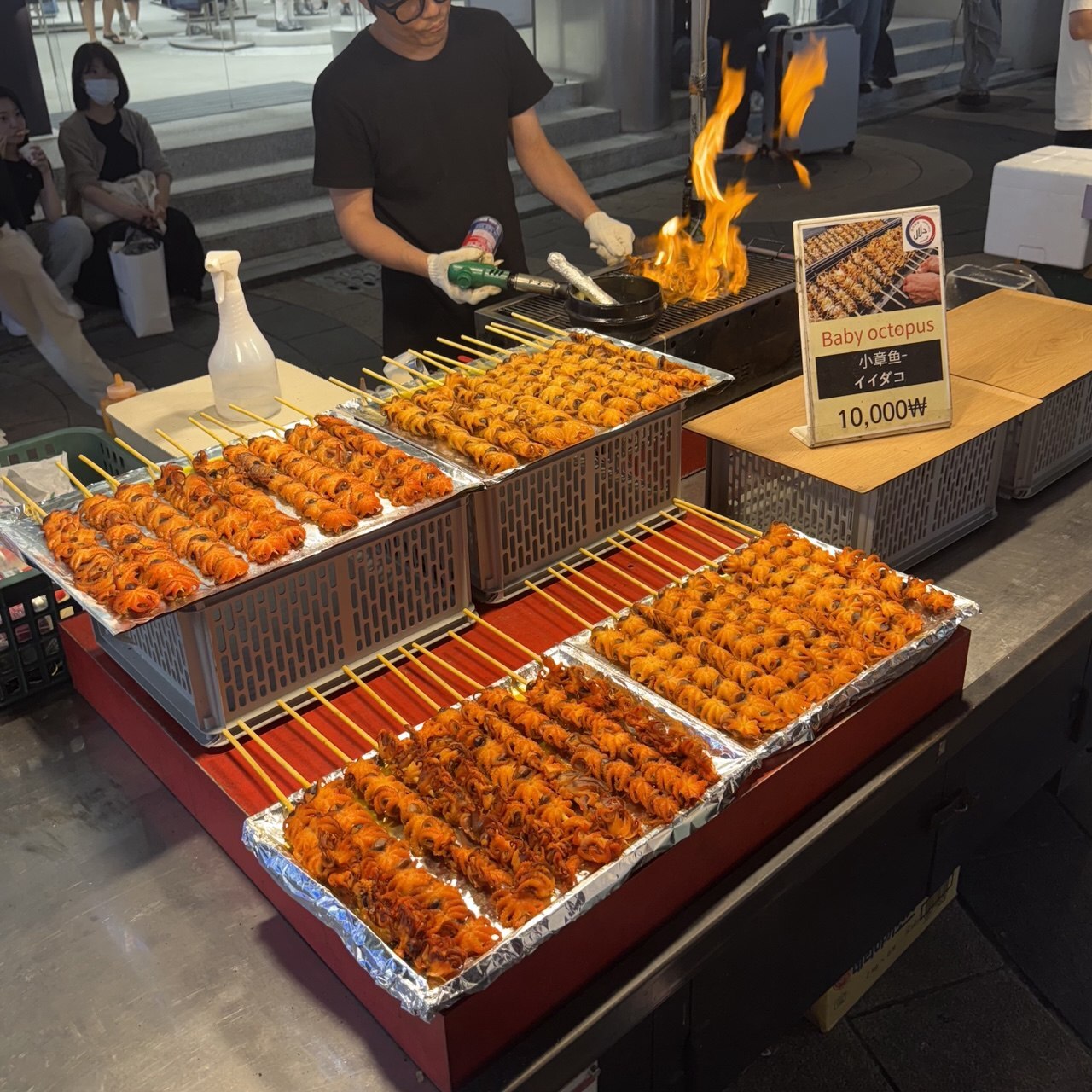 Идем гулять на Мендон, наслаждаться красивыми видами улиц и встречать разных известных айдолов и актеров на плакатах. Ужин жареным мясом (свинина + говядина), как в дорамах. Также попробуем корейское пиво и разные соджу. - День 2.