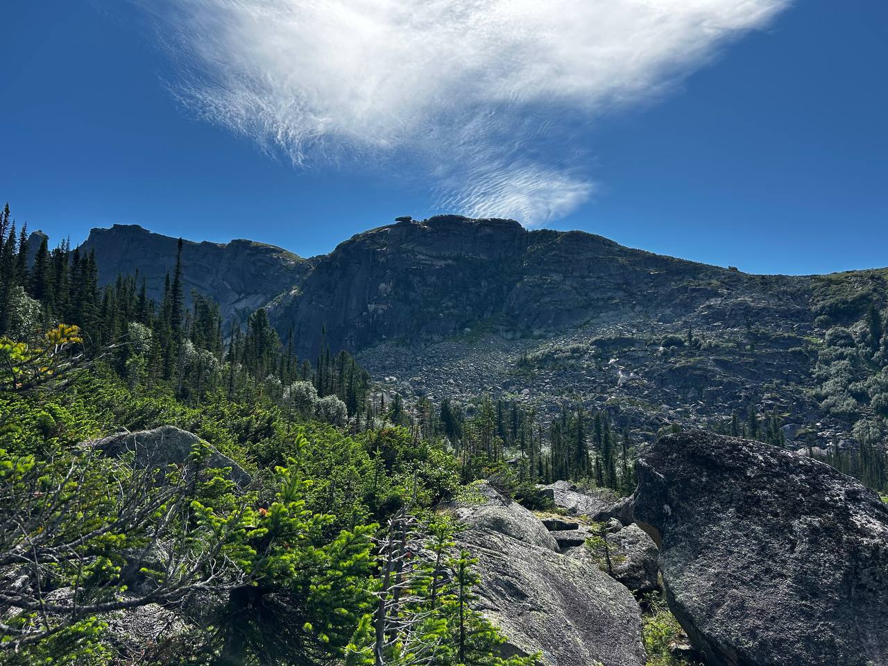 Будем идти среди таёжных лесов, заглянем на водопад и выйдем к озеру Радужному. Поздороваемся со Спящим Саяном, отправимся к месту нашей ночевки — кордону Малая Буйба. Расставив палатки и отдохнув, отправимся в знаковое туристическое место — на Висячий камень!