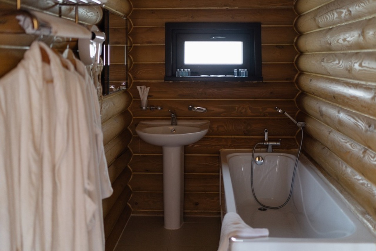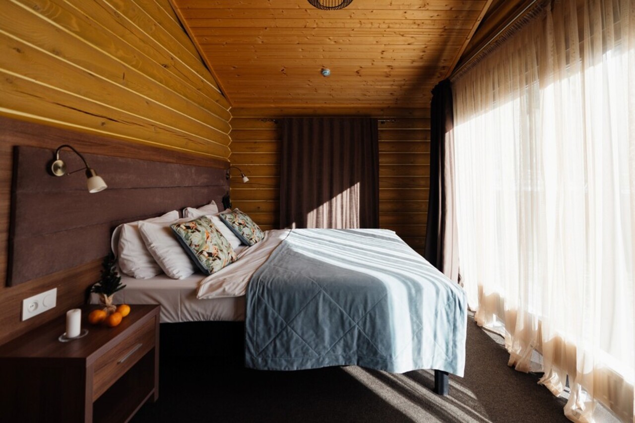 Проживание в тёплых домах из бруса на территории отеля 4★.