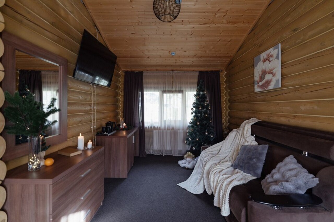 - День 1.Прилет, тёплый перекус по дороге и заселение в деревянный дом в отеле, ужинаем вкуснейшими блюдами и погружаемся в атмосферу новогодней сказки и уюта.