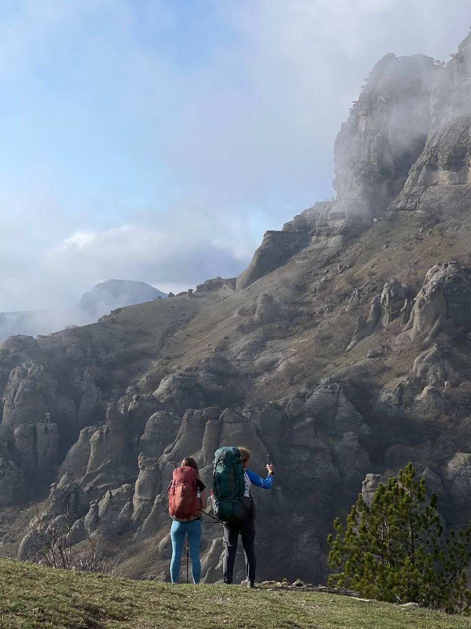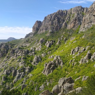 -День: Трансфер в село Лучистое. Выход на маршрут. Переход через национальный парк Долина привидений. Подъем на вершину горы Аленга. Переход в урочище Демерджи.