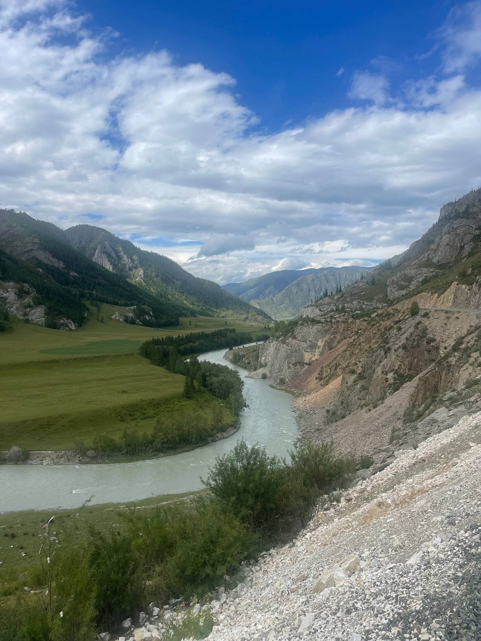 Мы сделаем остановку у Ильгуменских порогов — мощного и зрелищного участка Катуни, где можно наблюдать бурлящие потоки воды. Далее нас ждет уникальное место слияния рек Чуи и Катуни, Катунские террасы с их впечатляющими геологическими формами, древние наскальные рисунки в святилище Калбак-Таш. На протяжении всего пути будут меняться потрясающие пейзажи, вы увидите пасущихся животных и древние памятники.