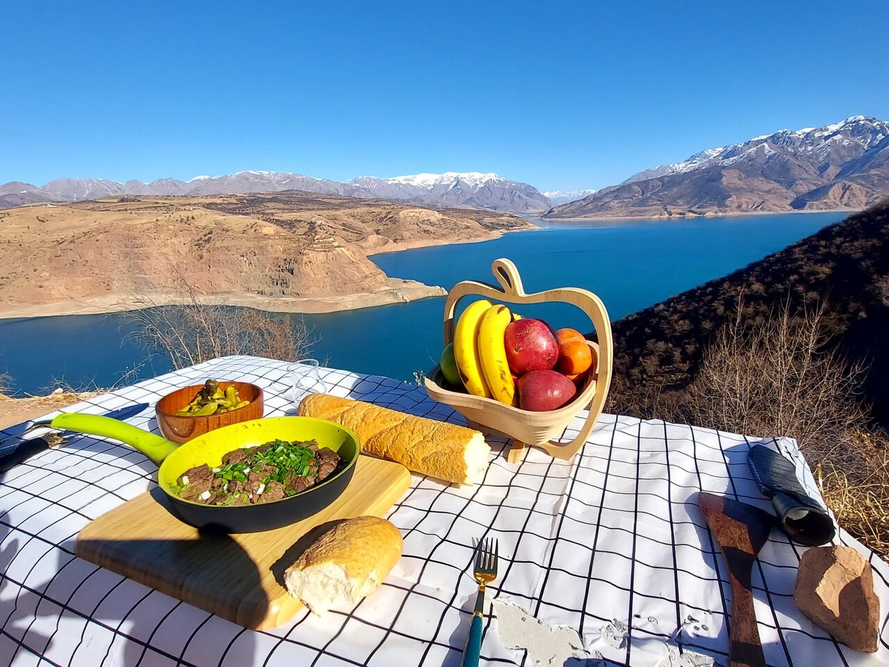 Что вы увидите: Резкую смену пейзажа: городской ландшафт сменится предгорьями, а затем откроется вид на бирюзовую гладь Чарвакского водохранилища. Мы сделаем остановку на одной из смотровых площадок для первых фото на память.