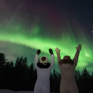 поездка на охоту за северным сиянием; сопровождение гида; поездка на санях до Батарейского водопада в Териберке; снегоходное сафари; перекус во время снегоходного сафари; обед в саамской деревне.