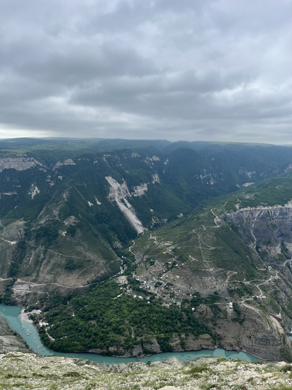 Со смотровой площадки в поселке Дубки вы полюбуетесь невероятными бирюзовыми водами реки Сулак и насладитесь панорамой гор.