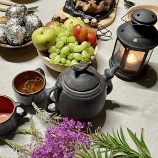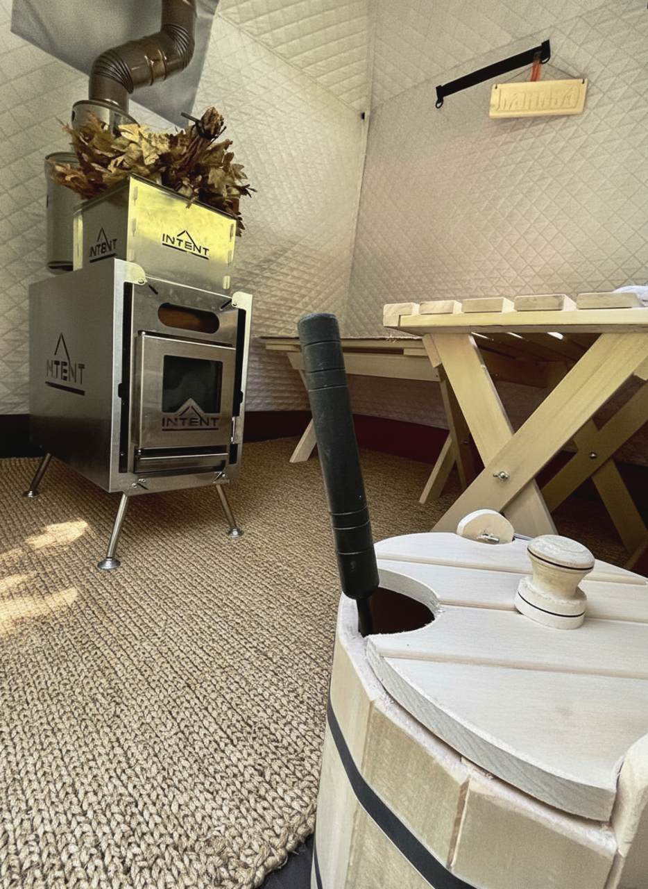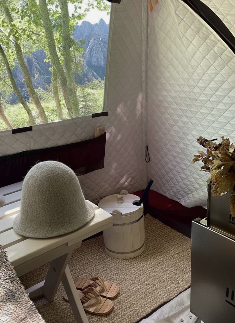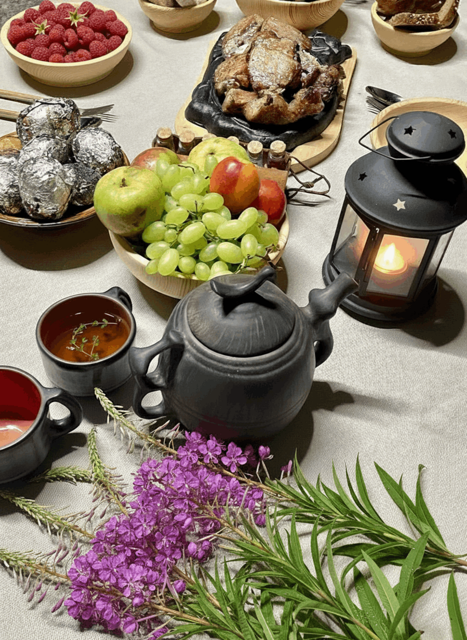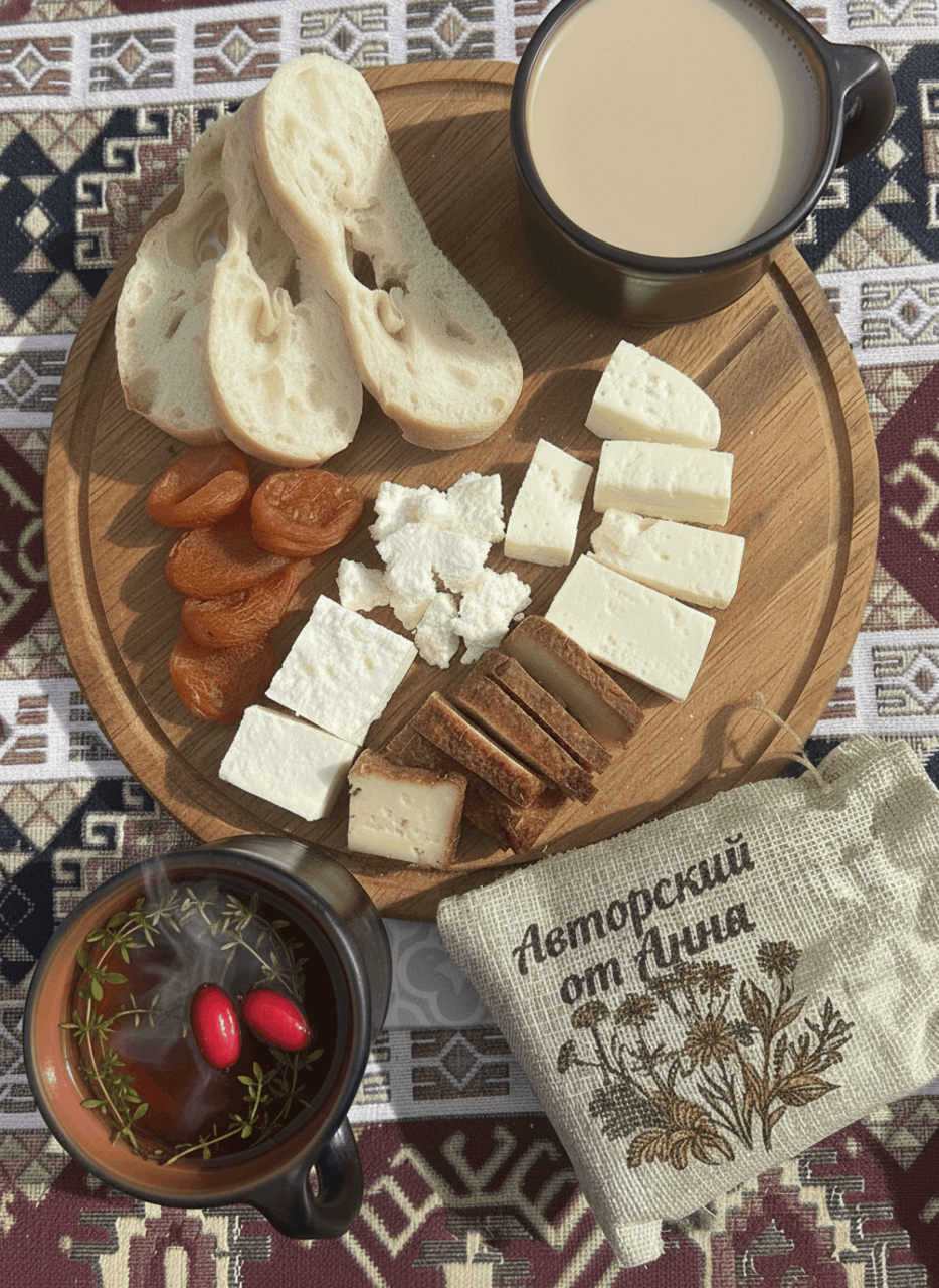 По возвращении — дровяная баня-восстановление с купелью в горной реке, окончательно смывающая дорожную пыль и городской шум, а также с ароматным чаем из горных трав (авторские сборы трав от Анны) и диким мёдом.