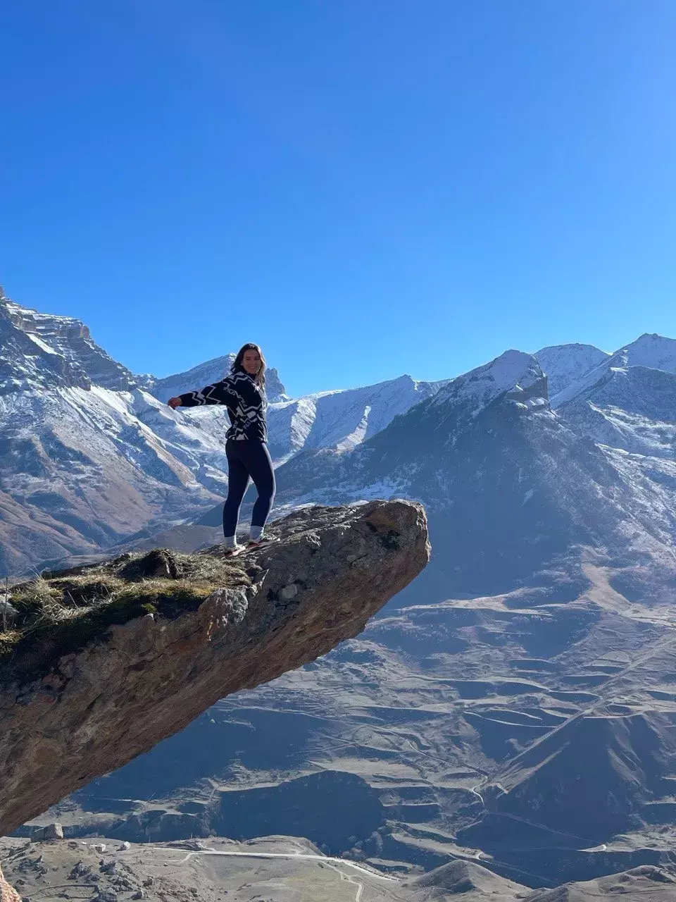 Впечатлившись романским стилем мы поедем на место, созданное природой - Язык Тролля. Это скальный выступ, расположенный в Безенгийском ущелье Кабардино-Балкарской Республики. Усевшись на нём, вы сможете сделать запоминающиеся кадры на фоне гор пятитысячников на отвесной скале.